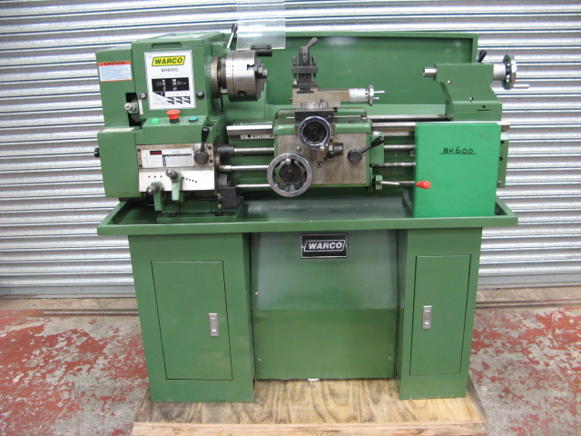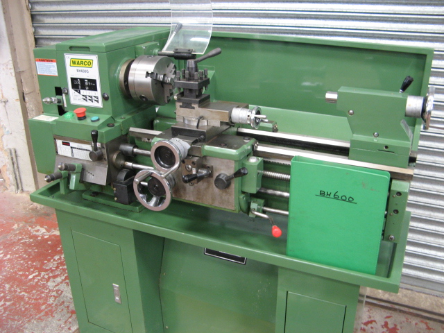 Warco 'BH600G' Lathe. Gap bed, 1ph 240 volt, power crossfeed, dual dials, 3 and 4 jaw chucks, faceplate, fixed and travelling steadies, vertical milling slide, quickchange toolpost (still boxed), 4 way toolpost, headstock bush, drill chuck, centres, Installation, User, Parts Manual. 'Excellent'. SOLD.
