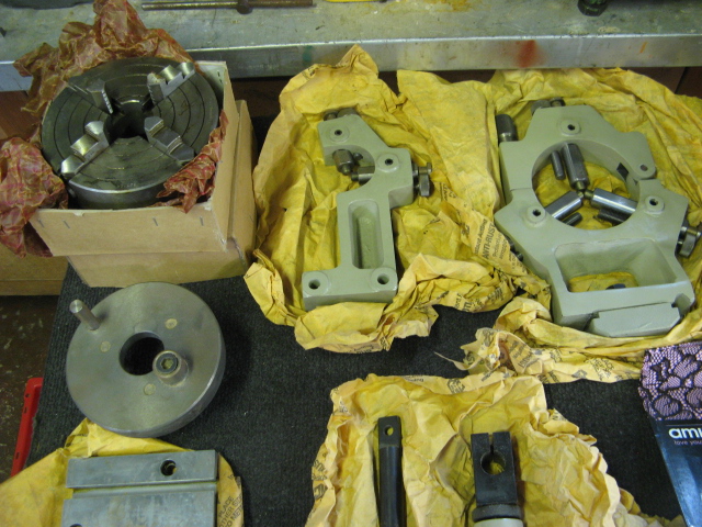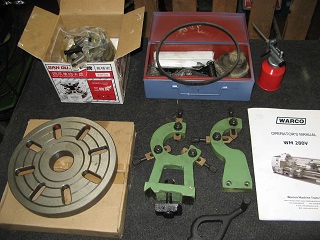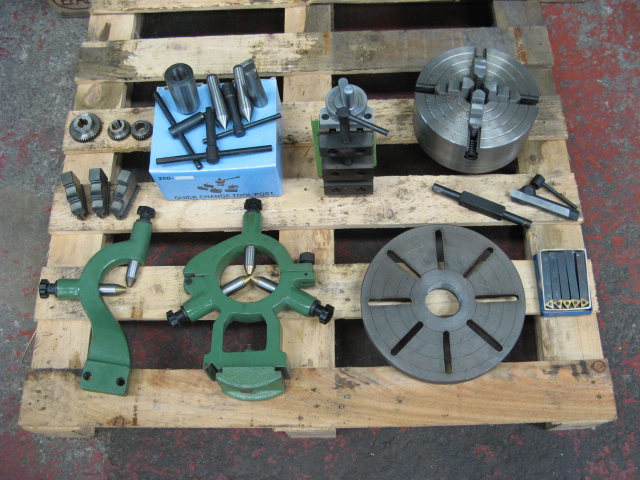 and 4 jaw chucks, faceplate, catchplate, 4 way toolpost plus standard