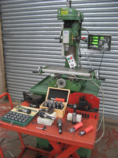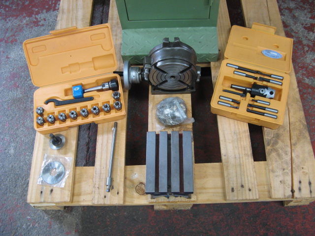 Mounted on Myford cabinet stand with deeptray and raising blocks. Power crossfeed, 3